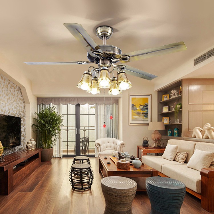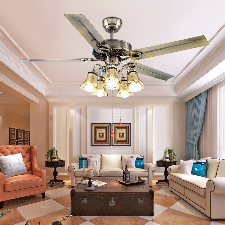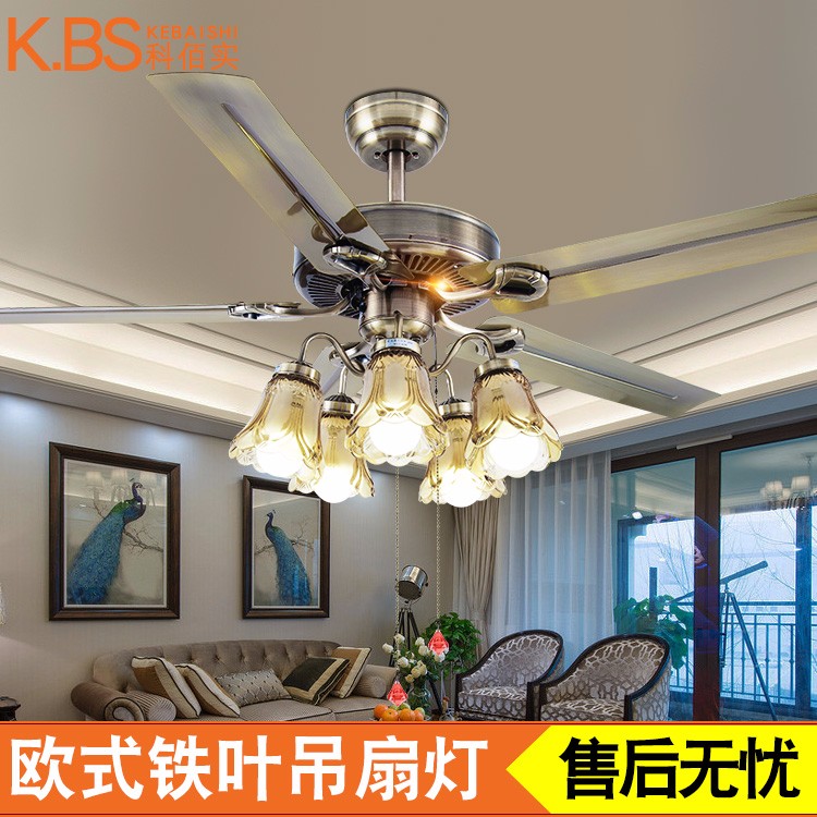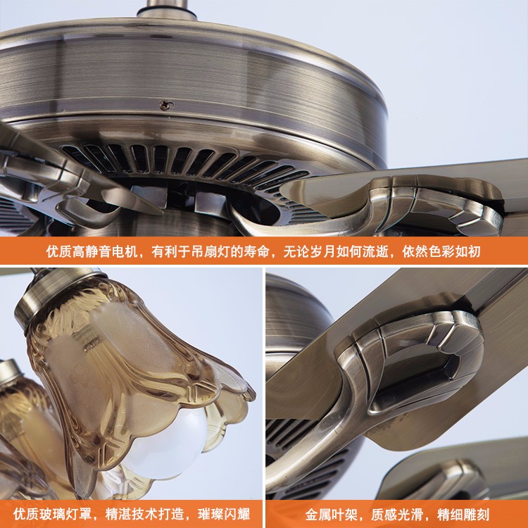 欧式客厅风扇灯 青古铜卧室书房餐厅装饰电扇灯 配灯泡铁叶吊扇灯
