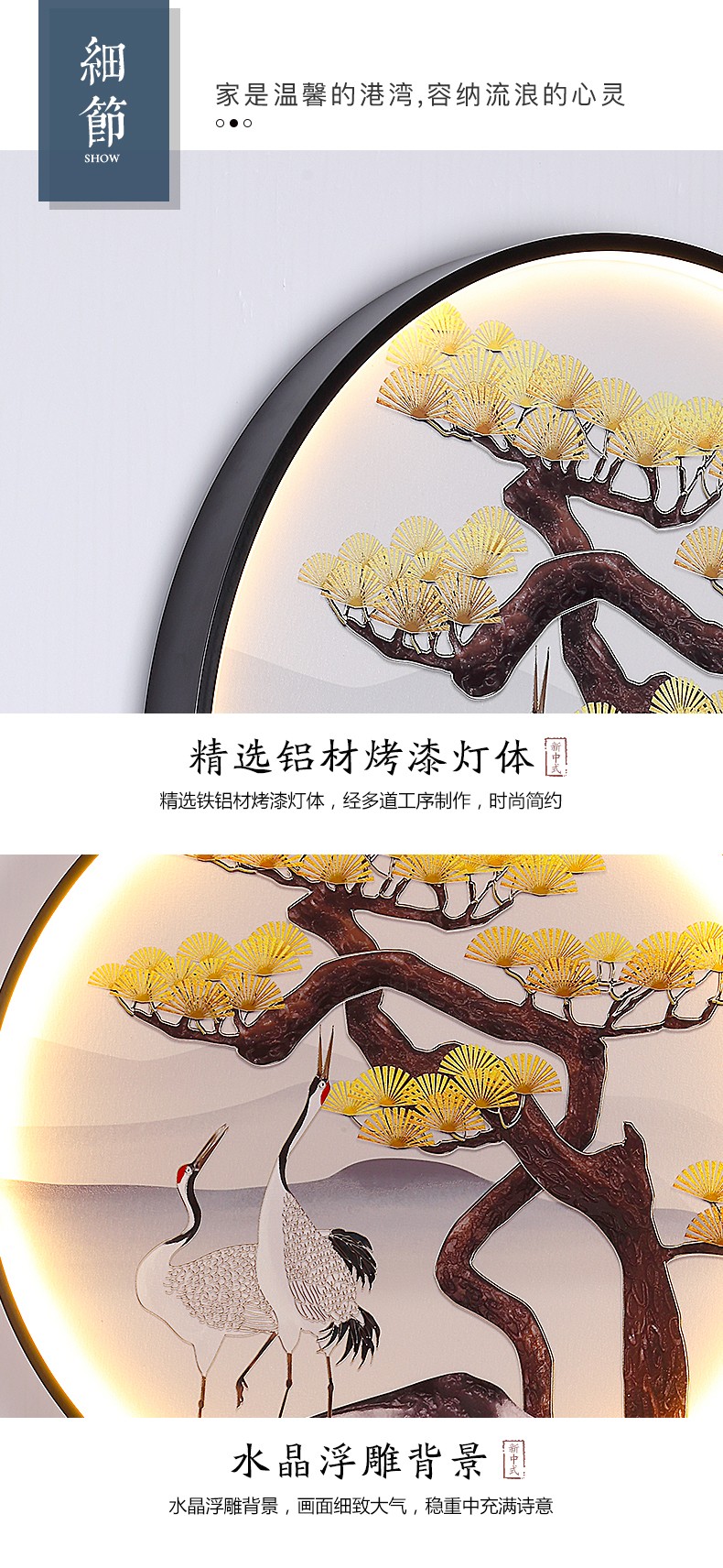 | 颜色材质 | 黑色,铝材+水晶 |