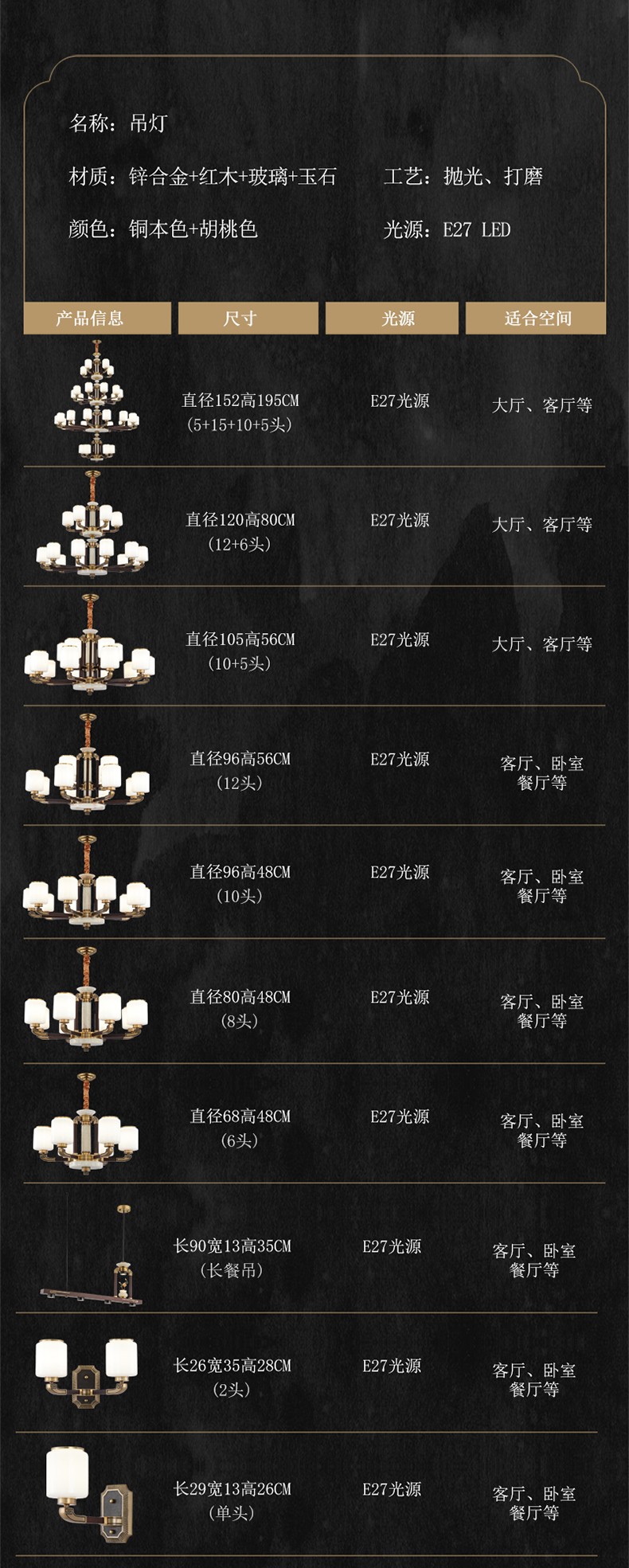 | 颜色材质 | 染色金古擦黑,玉石主体+锌合金灯臂+玻璃灯罩+玉石底锅+防尘盖 |