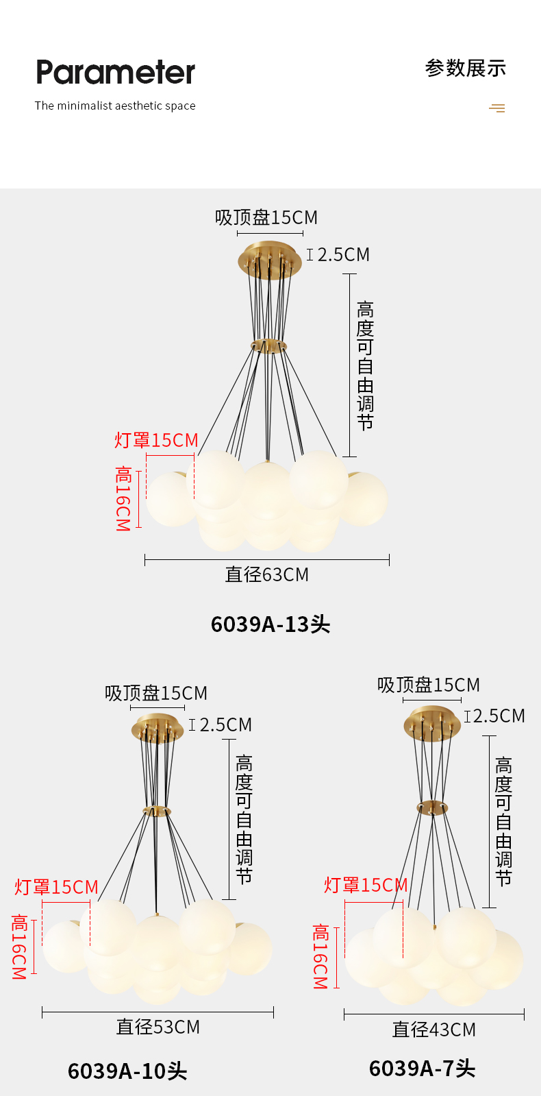| 规格 | D53CM 灯罩D15*H16CM 吸盘15*2.5CM,G9 |