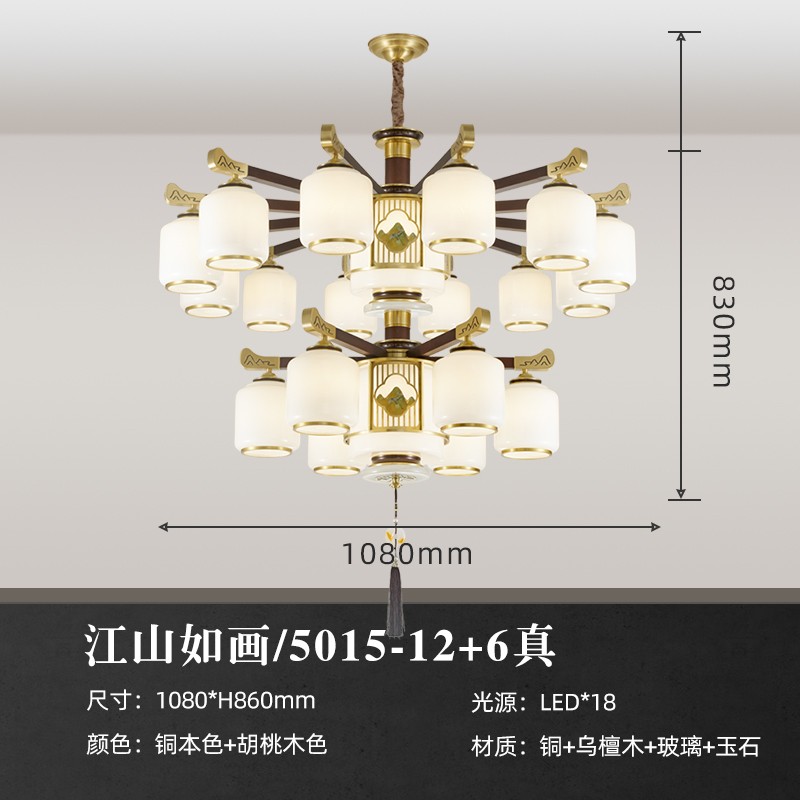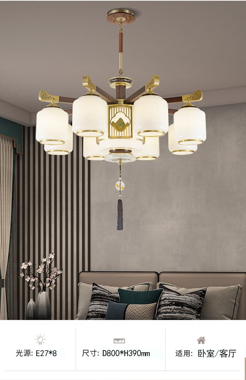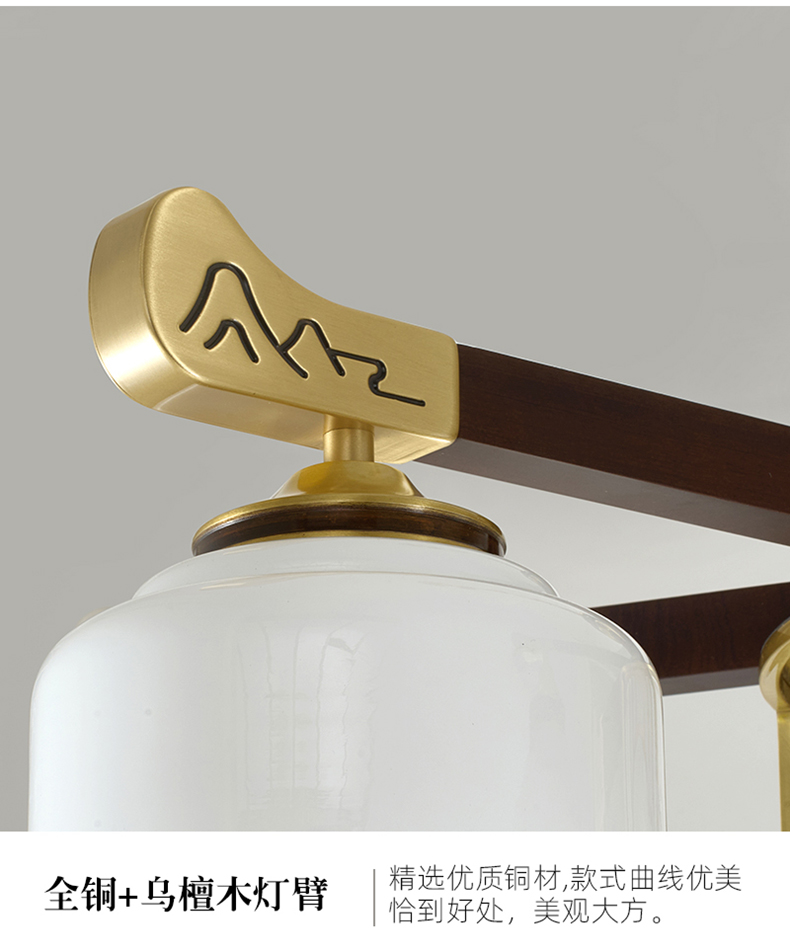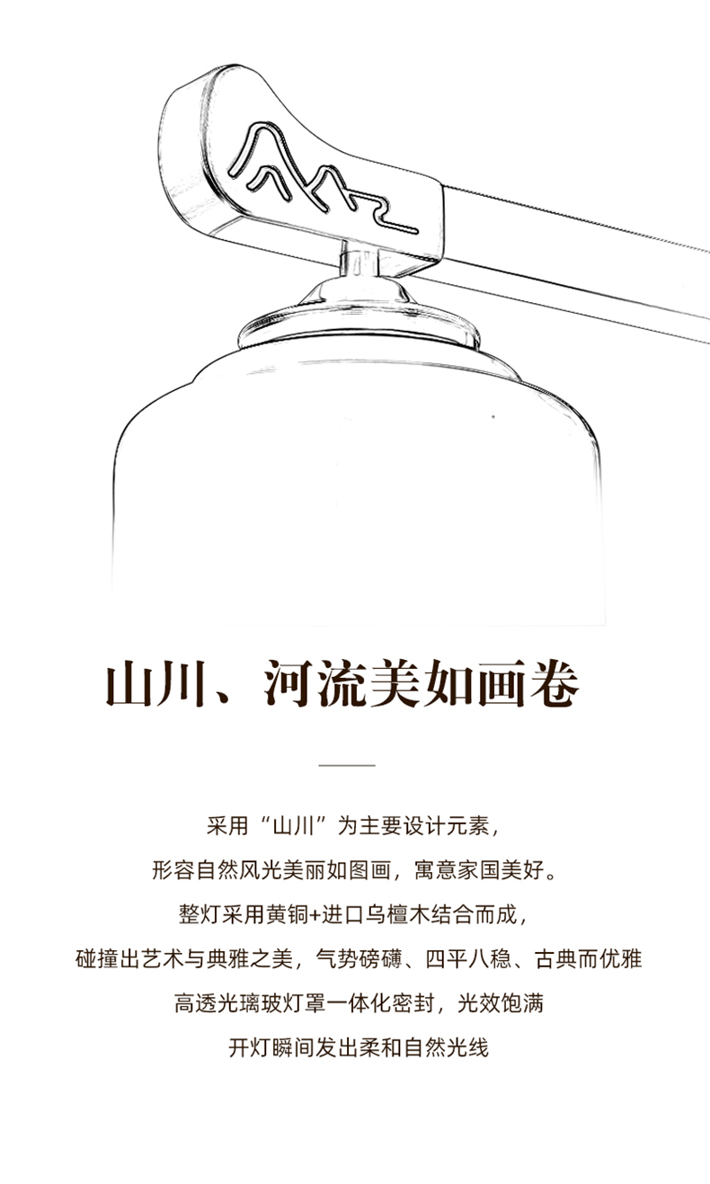 | 颜色材质 | 胡桃木色 全铜灯臂+进口乌檀木+玻璃灯罩+进口玉石+雕花印画 |