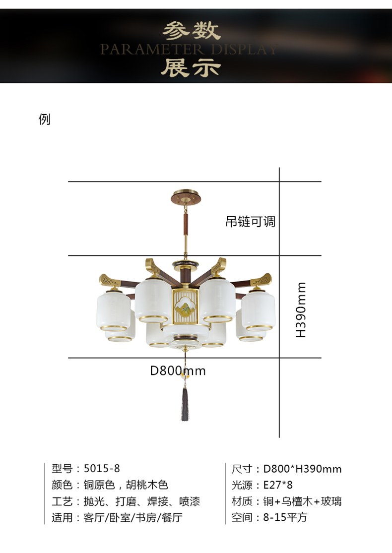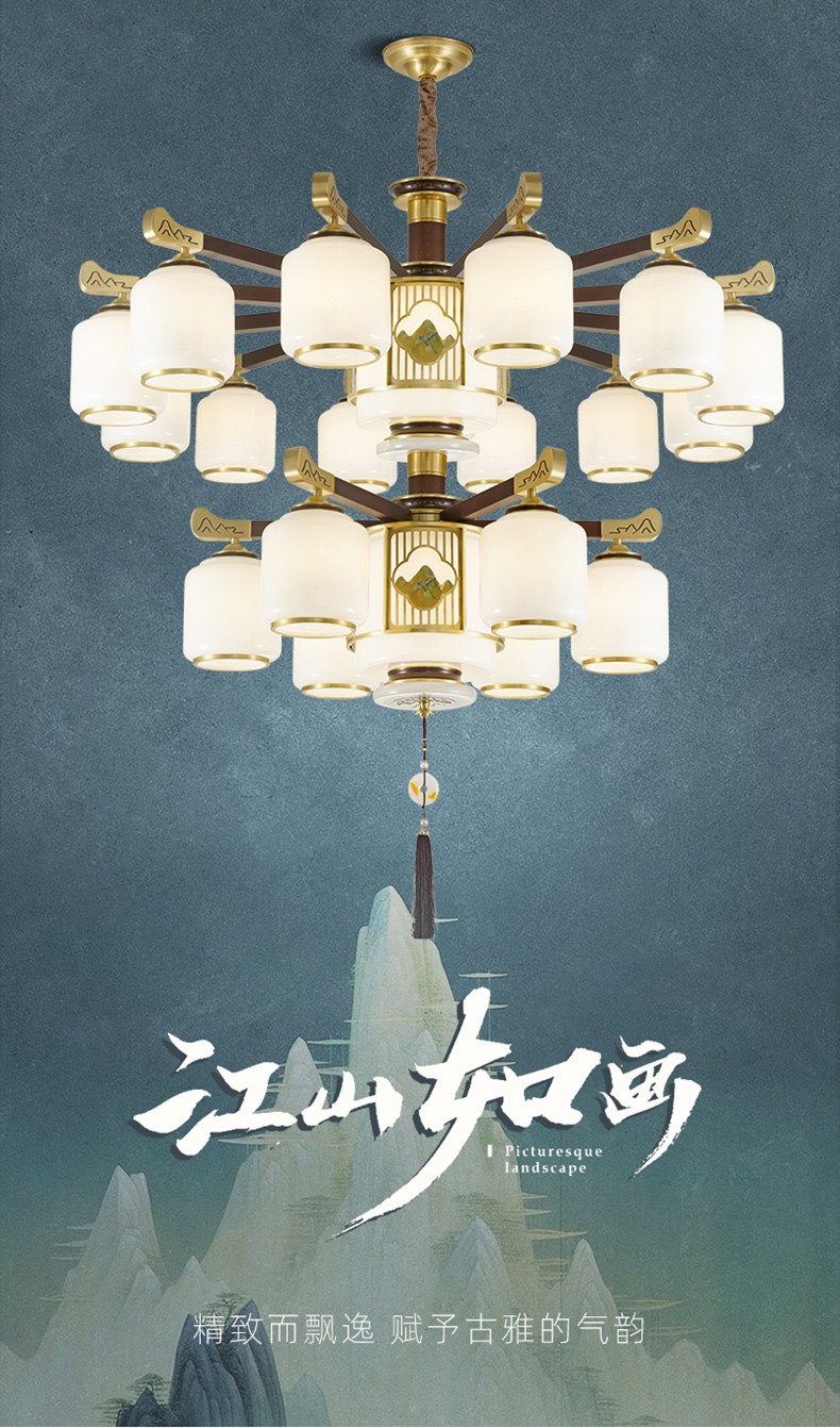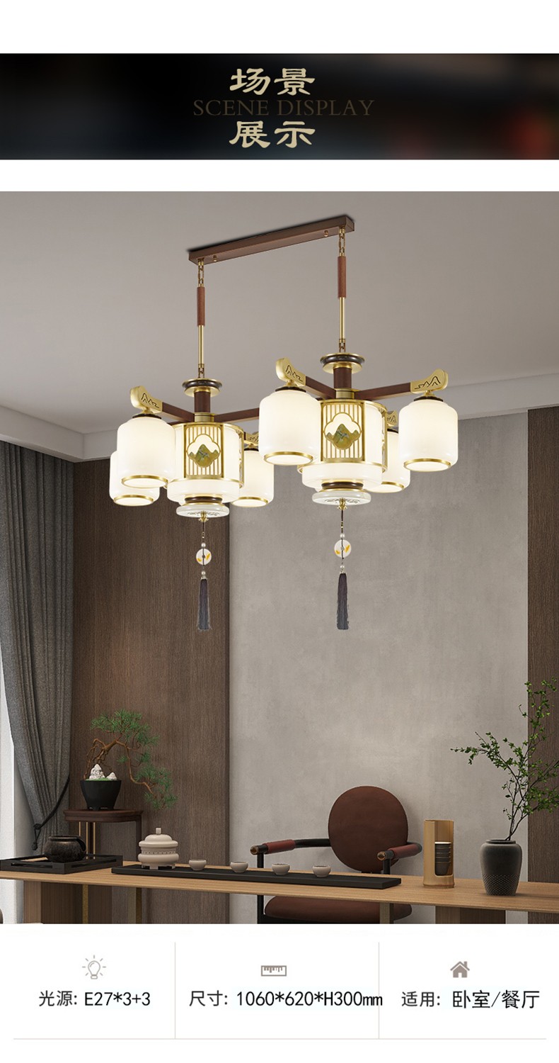 | 颜色材质 | 胡桃木色 全铜灯臂+进口乌檀木+玻璃灯罩+进口玉石+雕花印画 |