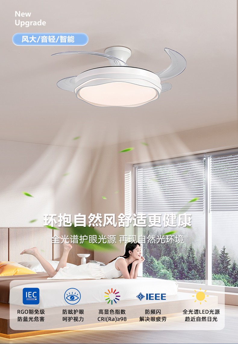 MB-F8909风扇灯 -【白+胡桃木色】三色变光