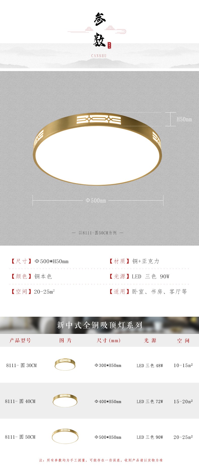 | 规格 | Ф300*H50mm,LED三色 |