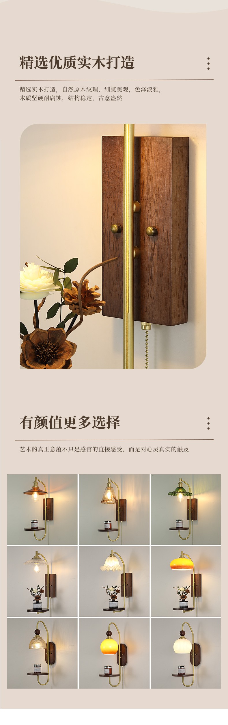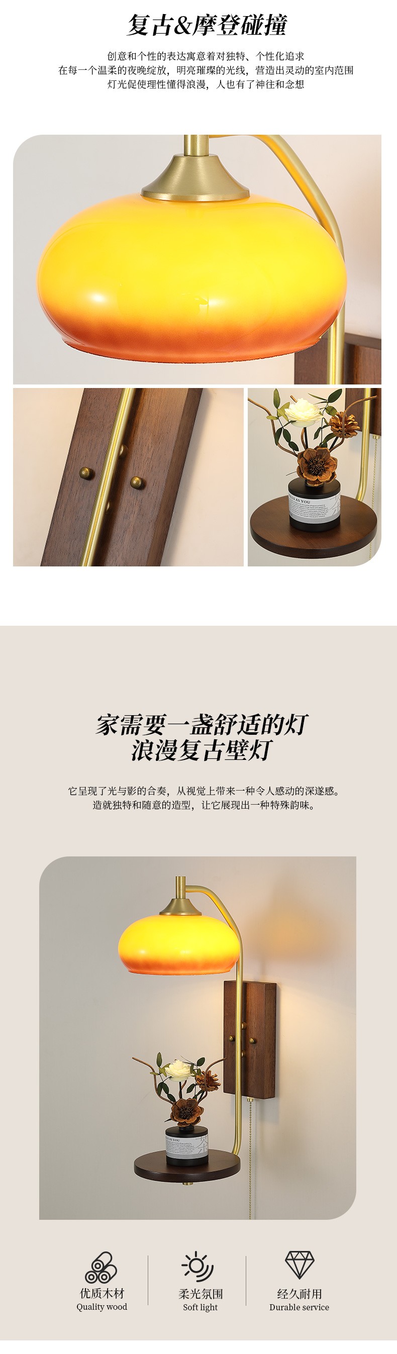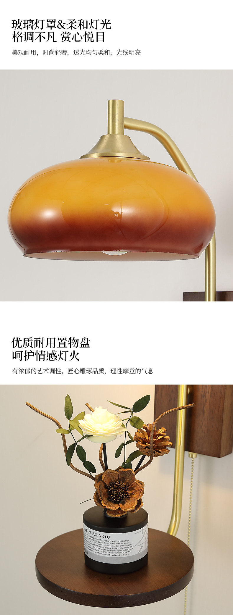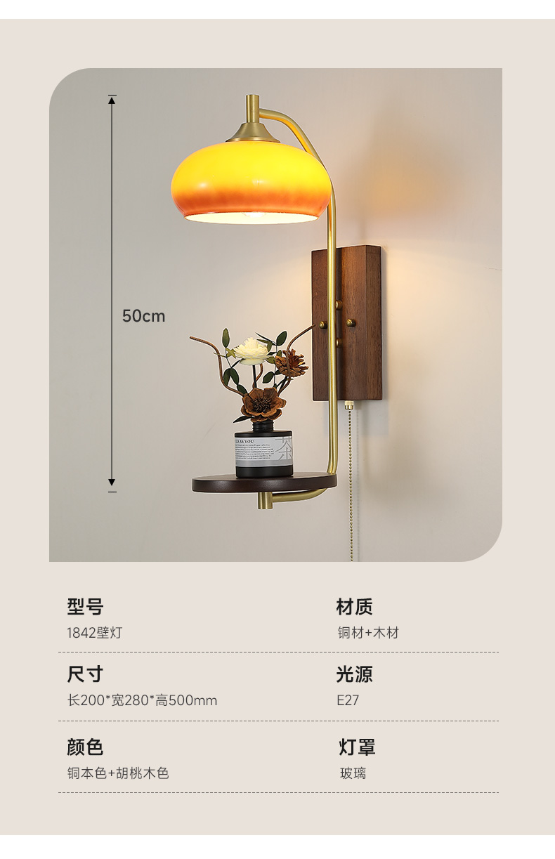 | 颜色材质 | 铜本色+胡桃木色,铜+木+玻璃 |