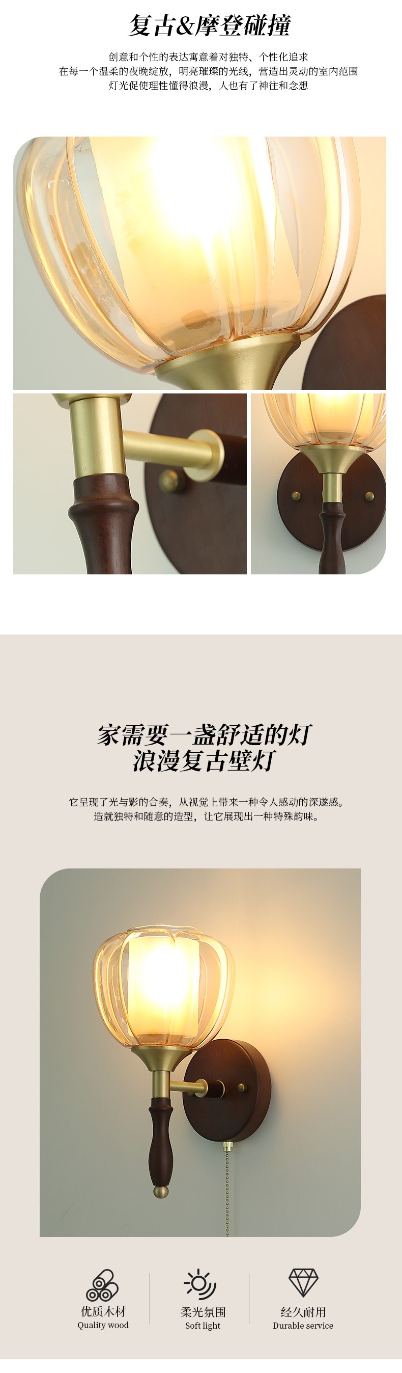 | 颜色材质 | 铜本色+胡桃木色,铜+木+玻璃 |