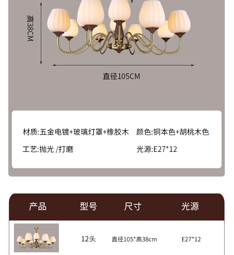 | 颜色材质 | 铜本色+胡桃色,金属+玻璃 |
