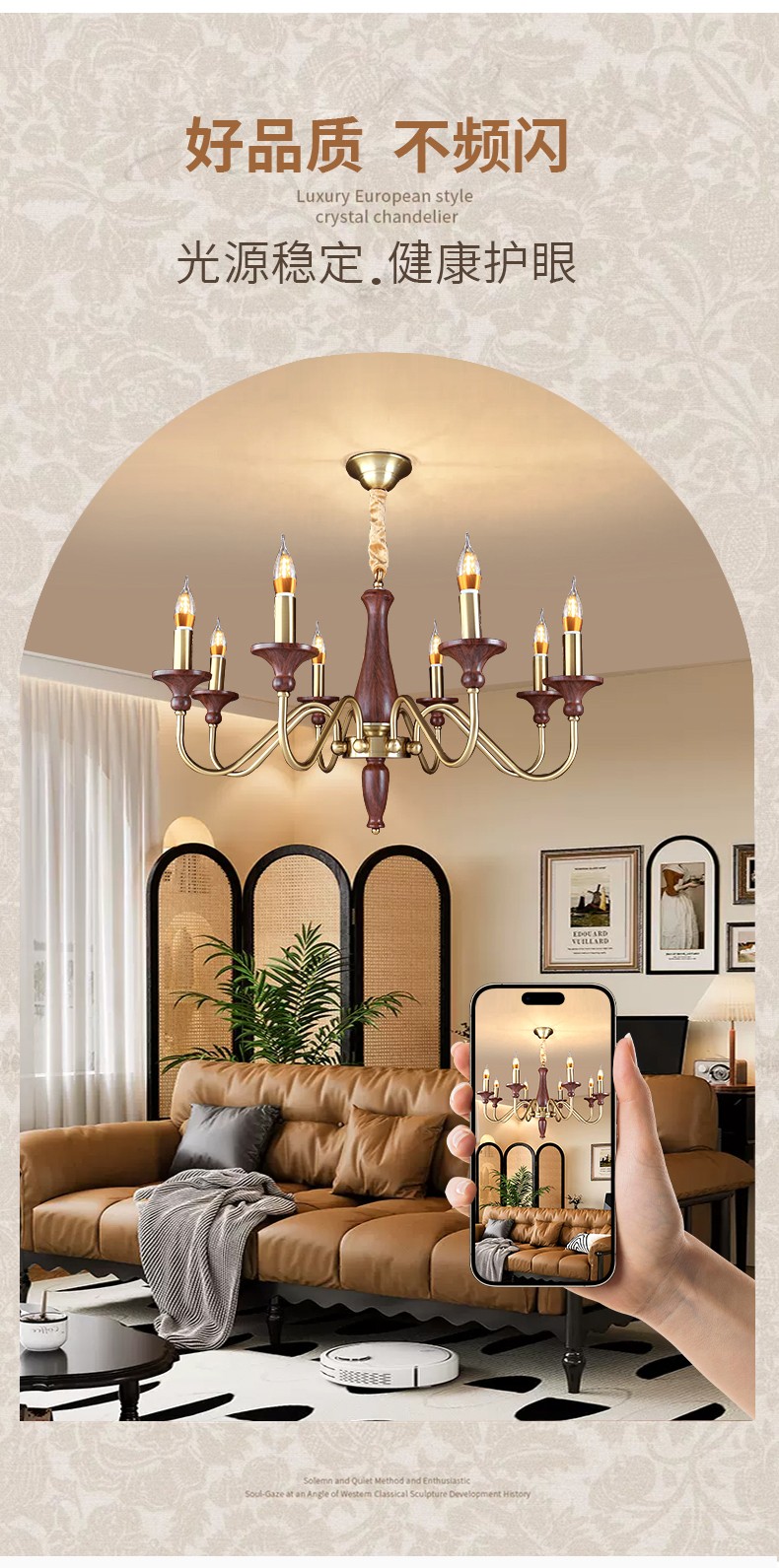 | 颜色材质 | 铜本色+胡桃色,五金电镀+水转印 |