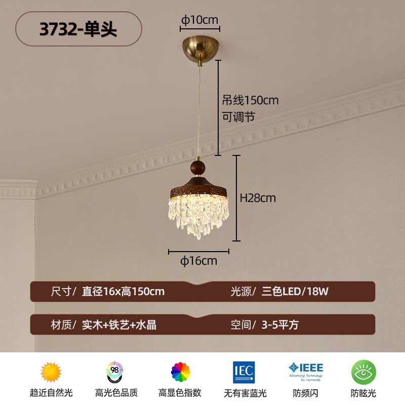 | 颜色材质 | 古铜拉丝+棕古铜+桃色,实木+铁艺+水晶 |