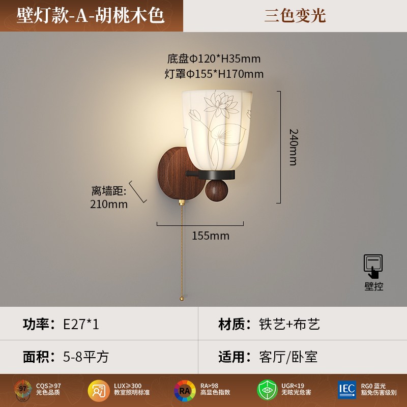 | 规格 | "240*155*H210(离墙距) 底盘φ120*H35 灯罩φ155*H170"mm,E27 |