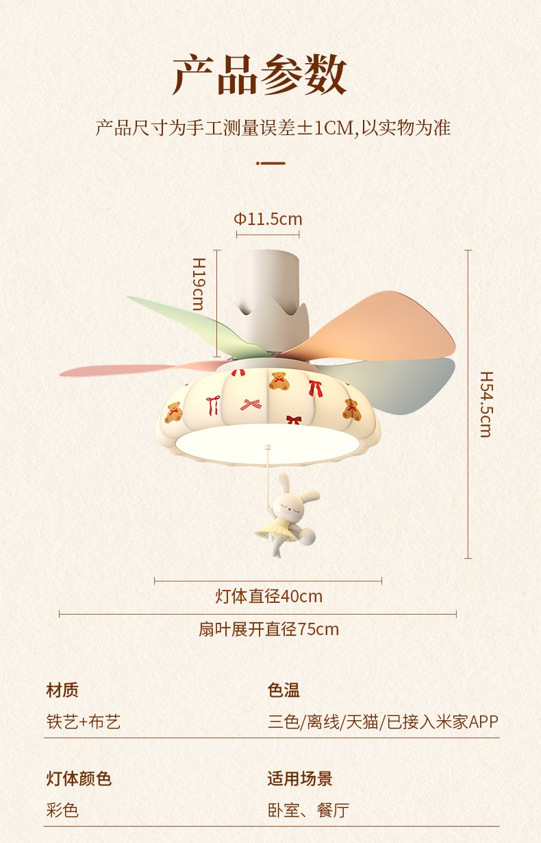 | 型号 | QL-FS5003 -云朵 舞兔 风扇灯【离线语音】 |