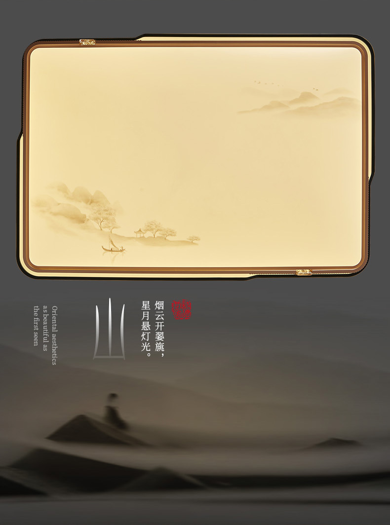 | 颜色材质 | "黑色+金边框 丝印风景画罩","注塑边框 亚克力灯罩" |