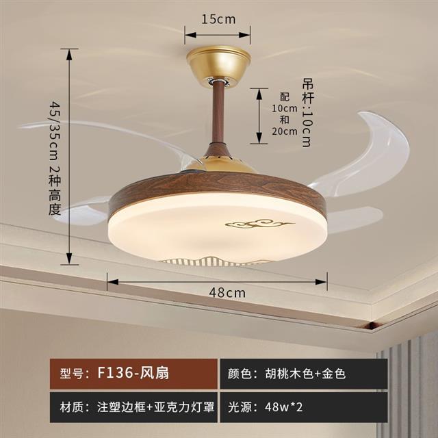 | 颜色材质 | "胡桃木色+金色边框 白色+线割工艺灯罩","铁艺风扇 亚克力灯罩" |