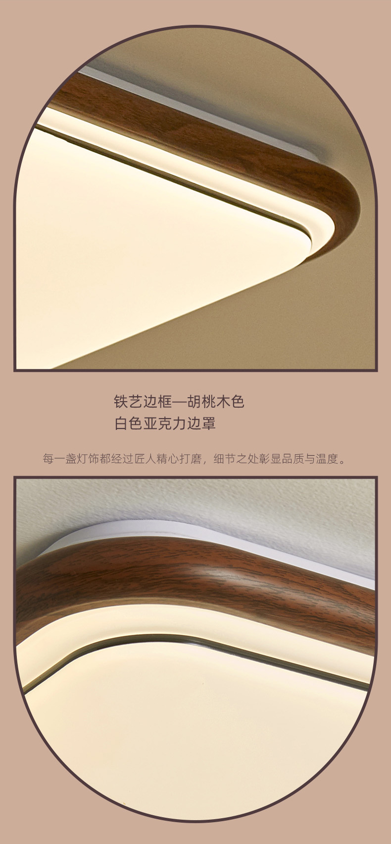 | 颜色材质 | 胡桃木色边框+白色灯罩,铁艺边框+亚克力灯罩 |