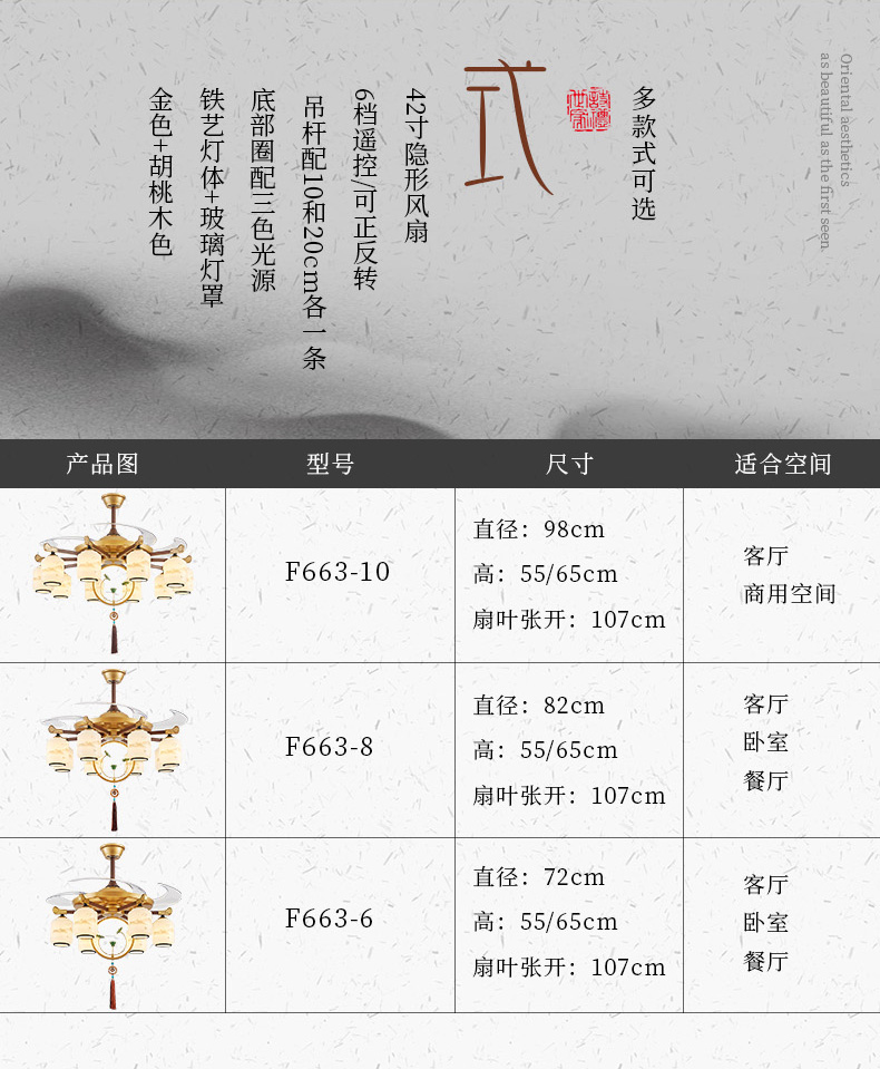 | 规格 | 直径:980mm 高:550/650m 扇叶张开1070mm,E27 |