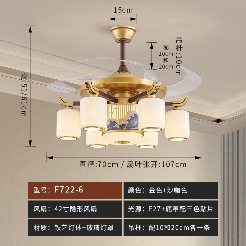 | 规格 | 直径:700mm 高:510/610mm 扇叶张开1070mm,E27 |