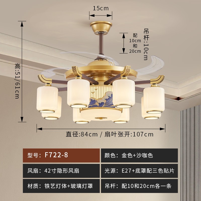 | 规格 | 直径:840mm 高:510/610mm 扇叶张开1070mm,E27 |