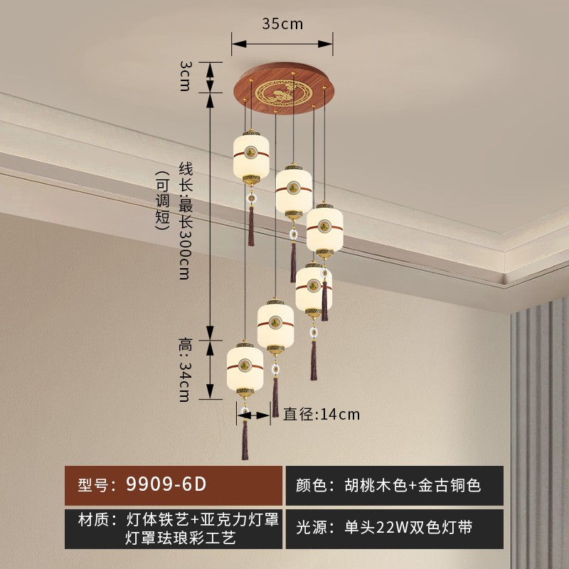 | 颜色材质 | 胡桃木色+金古铜色,灯体铁艺+亚克力灯罩 |