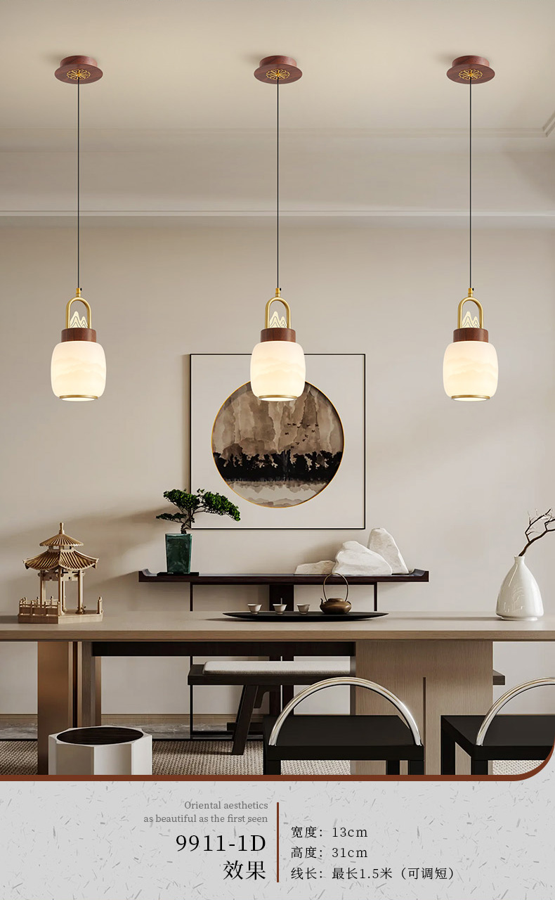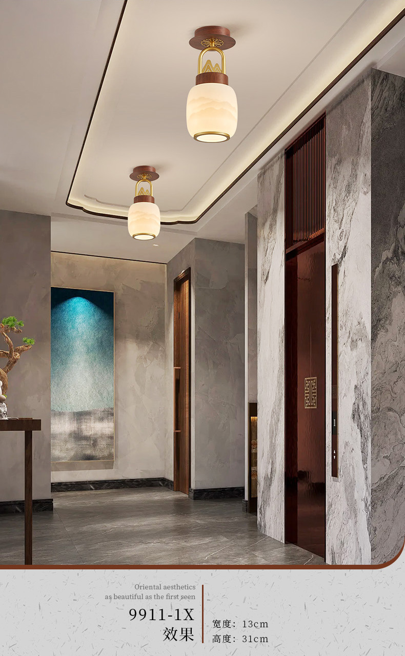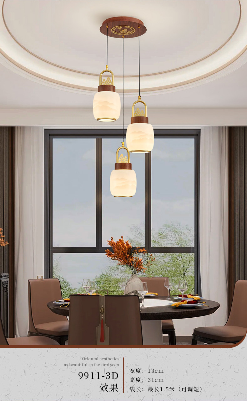 | 颜色材质 | 胡桃木色+金古铜色,灯体铁艺+玻璃灯罩 |