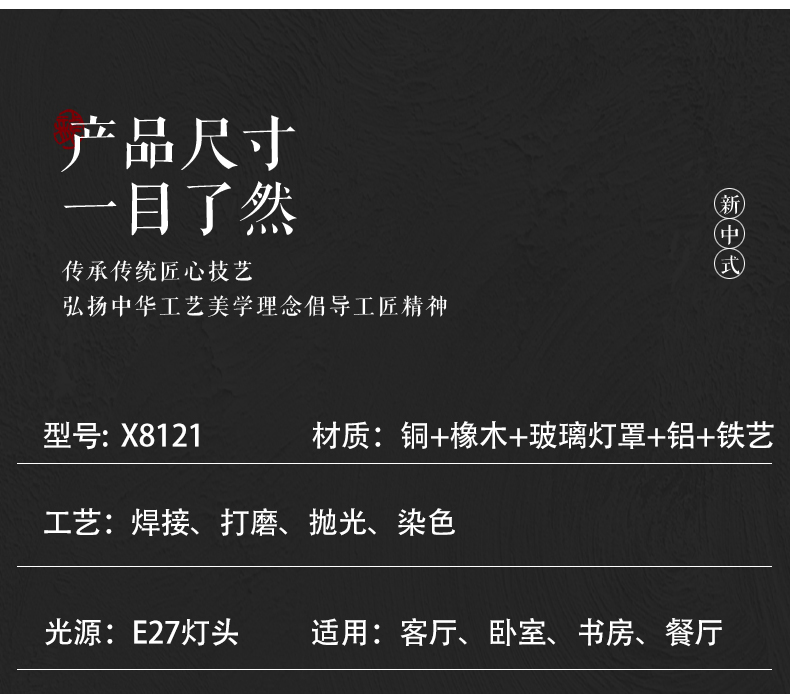 | 颜色材质 | 铜本色+木纹,铜+玻璃+木+铁 |