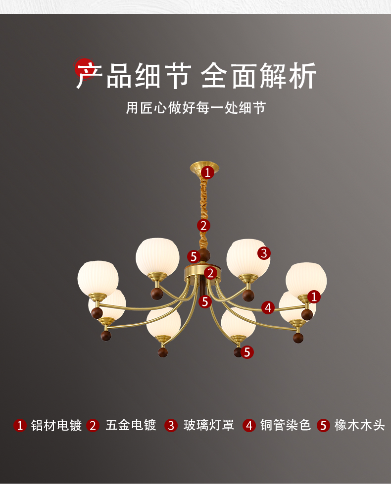 | 颜色材质 | 铜本色+木纹,铜+橡木+玻璃罩+铝+铁艺 |