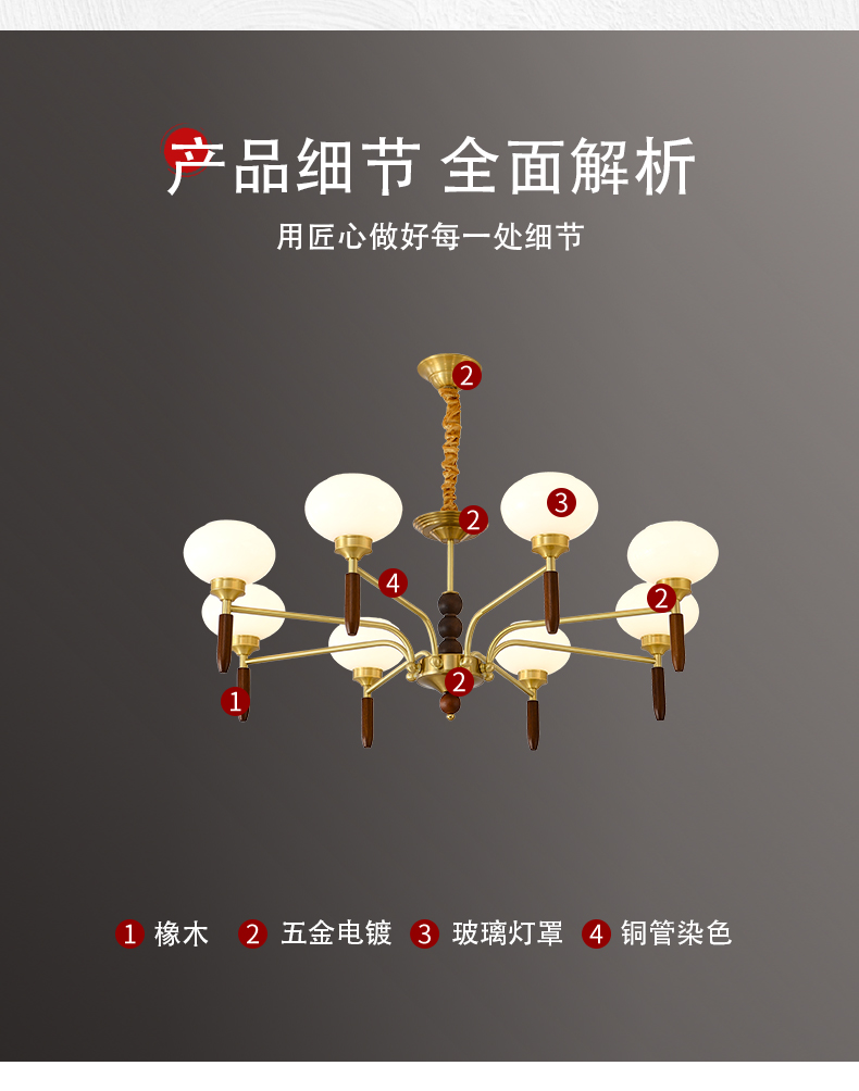 | 颜色材质 | 铜本色+木纹,铜+橡木+玻璃+铝+铁艺 |