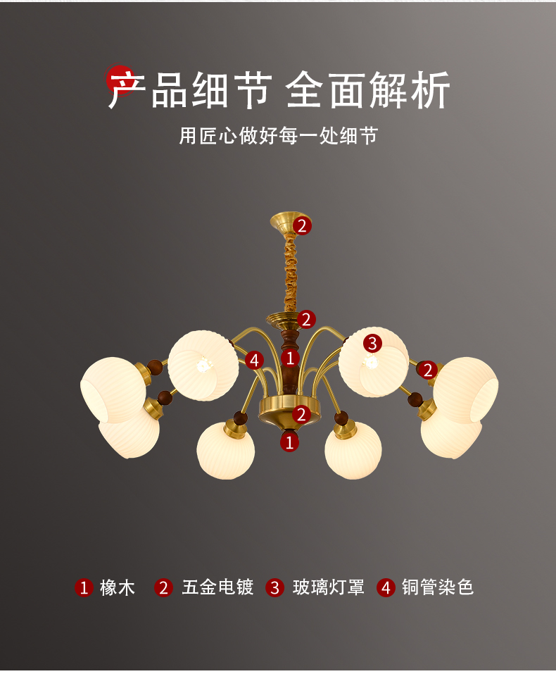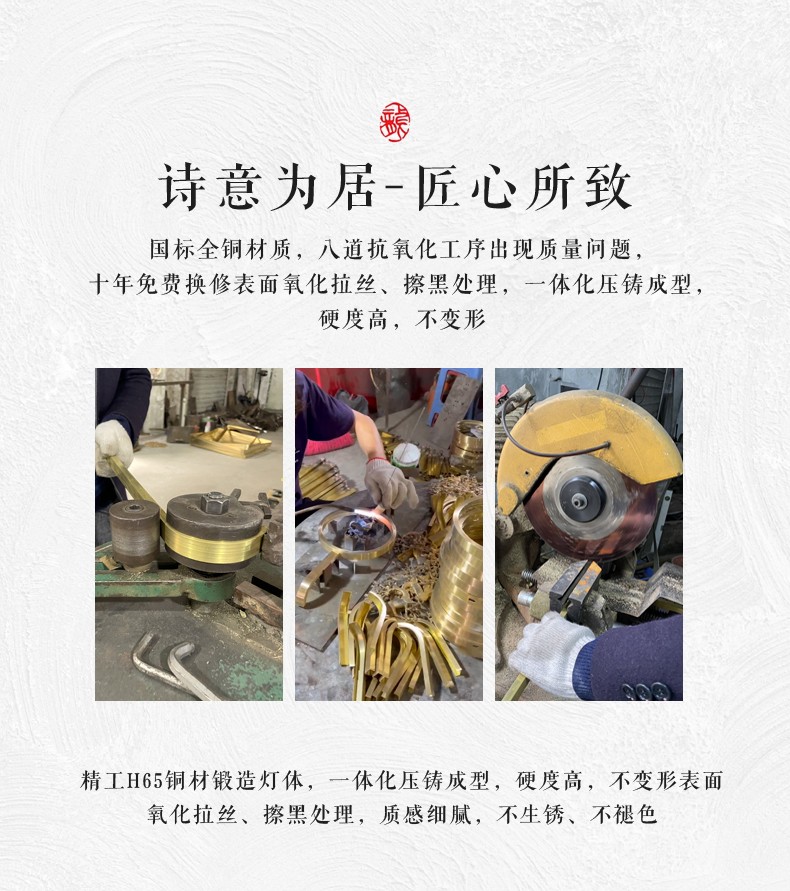 | 颜色材质 | 铜本色+木纹,铜+橡木+玻璃+铝+铁艺 |