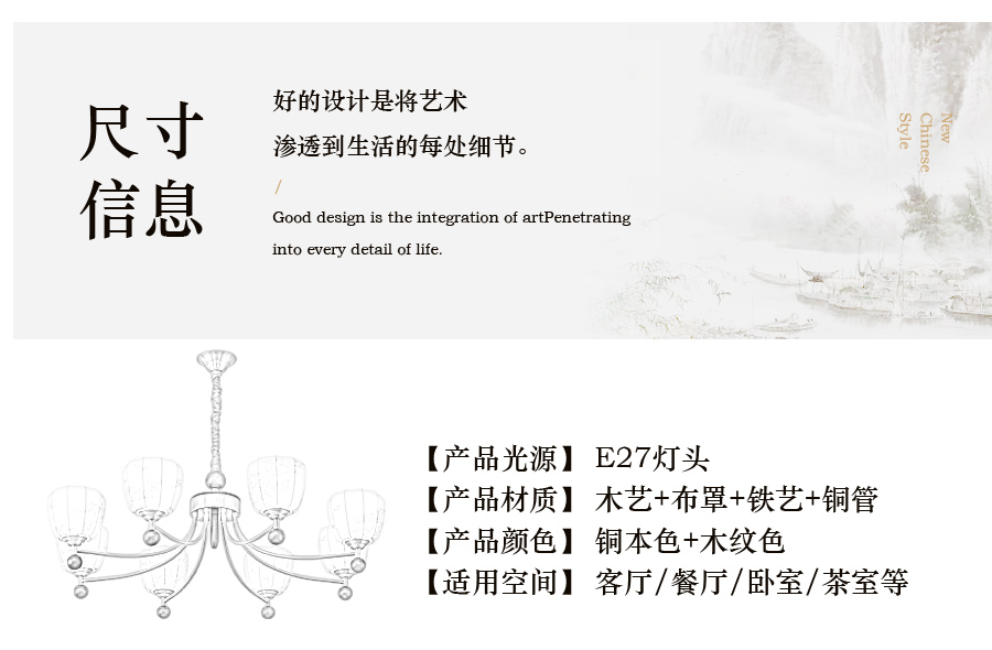 | 颜色材质 | 铜本色+木纹,铜+橡木+布艺+铝+铁艺 |