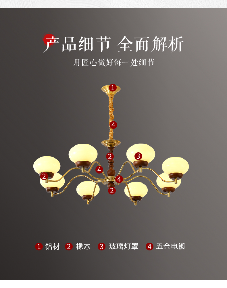| 颜色材质 | 铜本色+木纹,铁艺+橡木+玻璃罩+铝 |