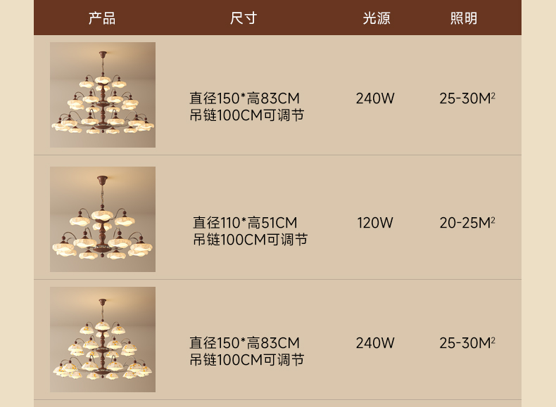 | 规格 | Ø1100*H510(配1米吊链可调节)总高1510mm,LED |