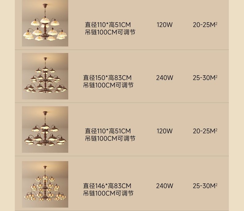 | 规格 | Ø1500*H830(配1米吊链可调节)总高1830mm,LED |