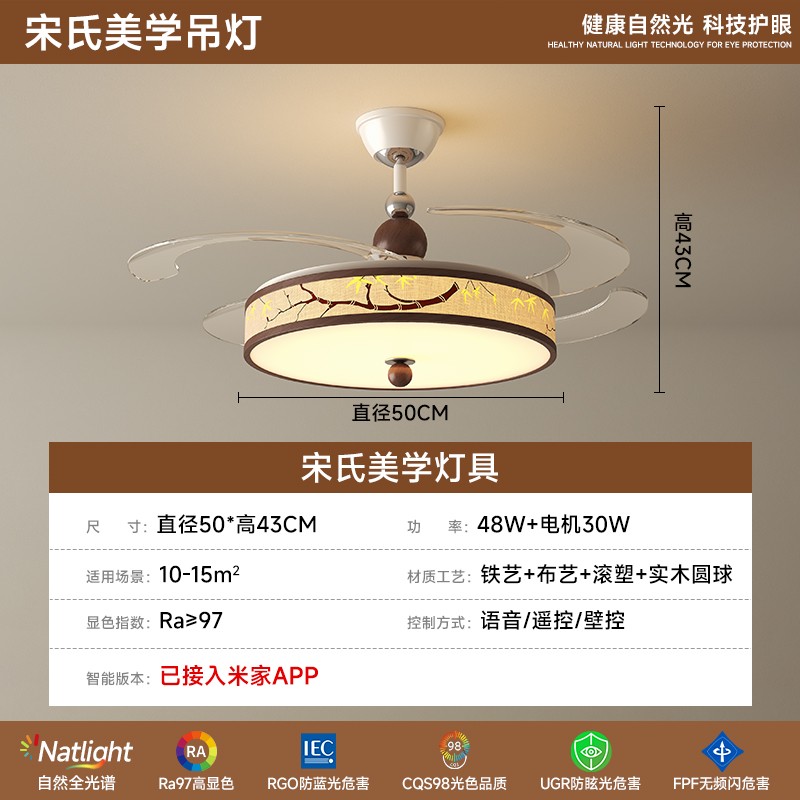 | 规格 | Ø500*80mm 扇叶展开:Ø1060mm配吊杆100-200cm各一条,LED |