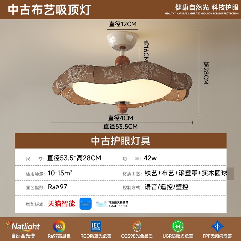 | 颜色材质 | 胡桃木色+沙白+咖啡色,铁艺+布艺+滚塑罩+实木圆球 |
