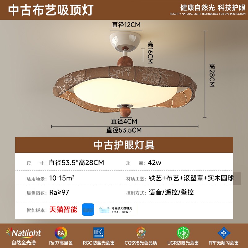 | 颜色材质 | 胡桃木色+沙白+咖啡色,铁艺+布艺+滚塑罩+实木圆球 |