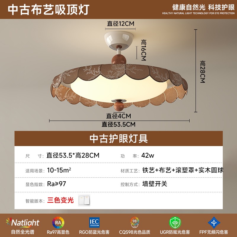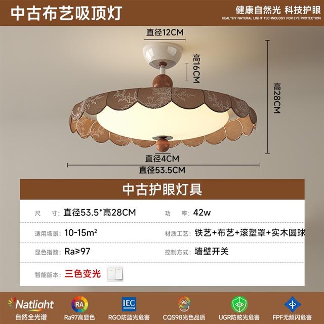 | 颜色材质 | 胡桃木色+沙白+咖啡色,铁艺+布艺+滚塑罩+实木圆球 |