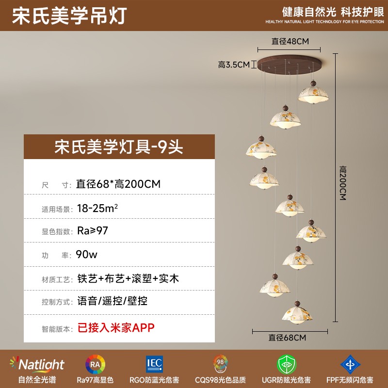 | 颜色材质 | 胡桃木色+铬色+米白色,铁艺+布艺+滚塑罩+实木圆球 |