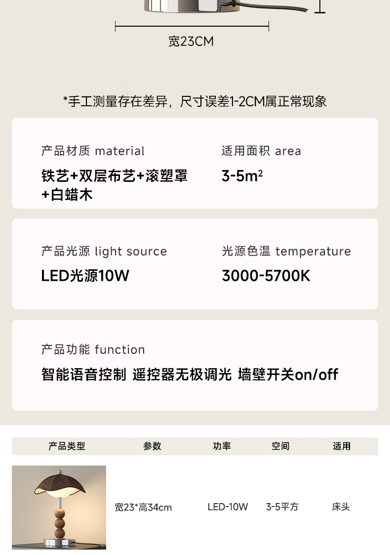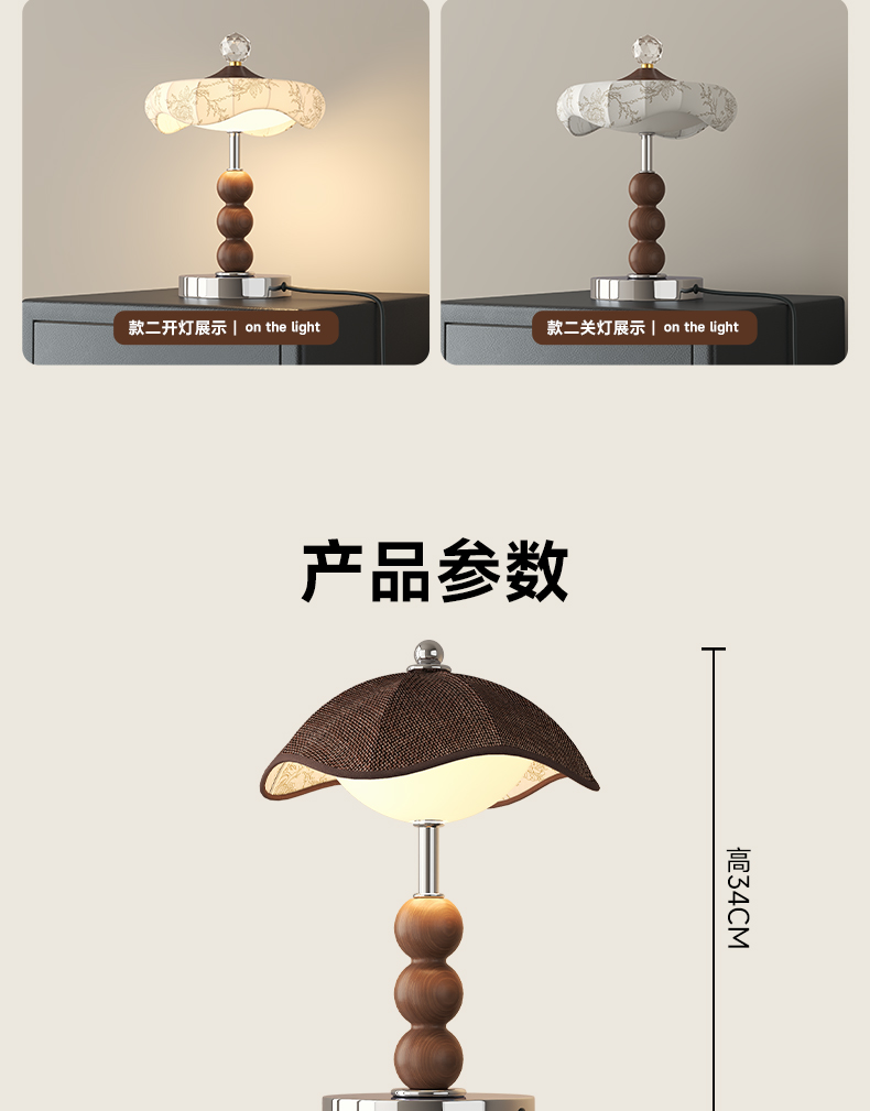 | 颜色材质 | 胡桃木色+铬色,铁艺+双层布艺+滚塑罩+白蜡木 |