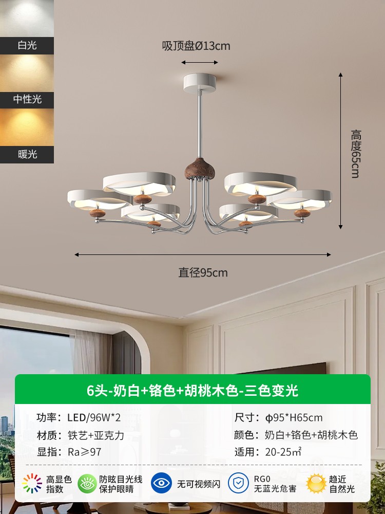 | 颜色材质 | 奶白+铬色+胡桃木色,铁艺+亚克力 |