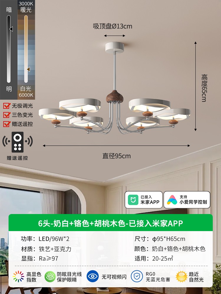 | 颜色材质 | 奶白+铬色+胡桃木色,铁艺+亚克力 |