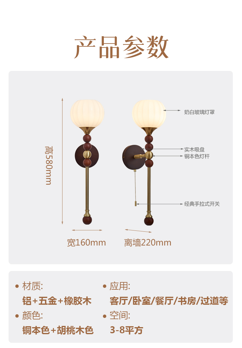 | 颜色材质 | 铜本色+胡桃木色,铝+五金+橡胶木 |