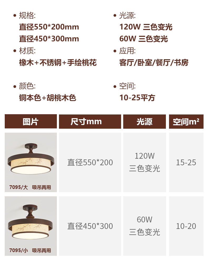 | 颜色材质 | 胡桃木色,橡木胡桃木色+不锈钢铜本色+手绘桃花效果 |