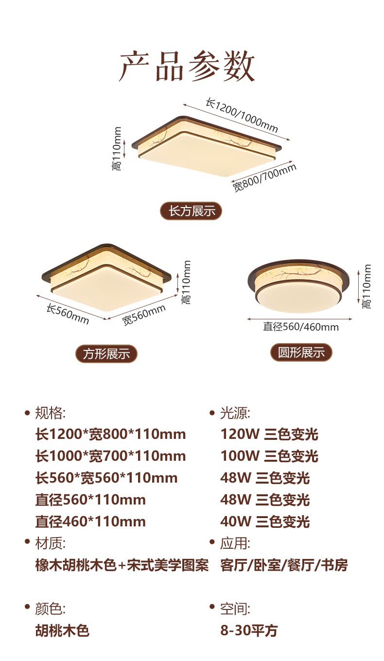 | 颜色材质 | 胡桃木色,橡木胡桃木色+宋式美学图案 |