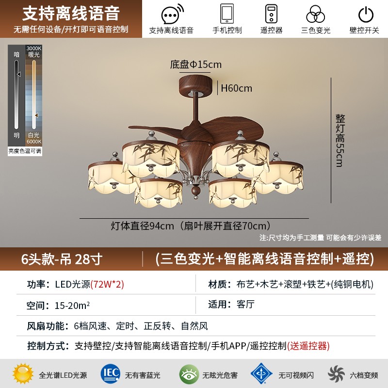 | 型号 | QL-1108-6头FS28寸直叶吊杆款【离线语音】 |