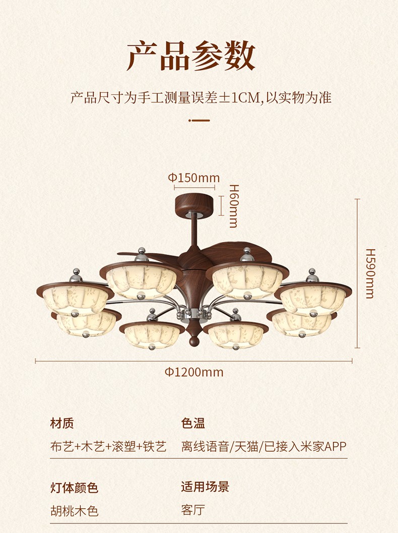 | 型号 | QL-1114-8头FS28寸直叶吸顶款【离线语音】 |