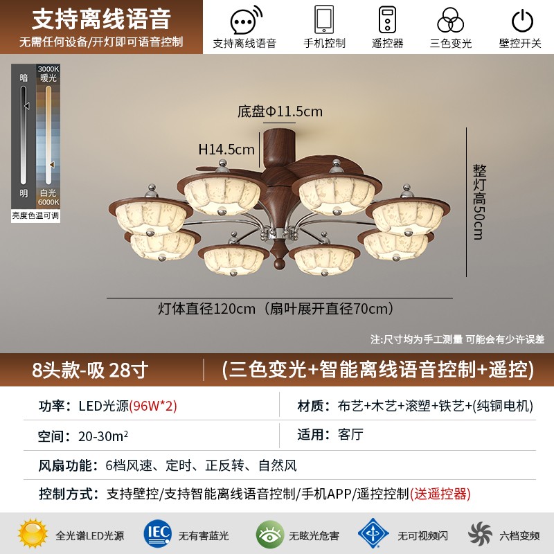 QL-1114-8头FS28寸直叶吸顶款【离线语音】