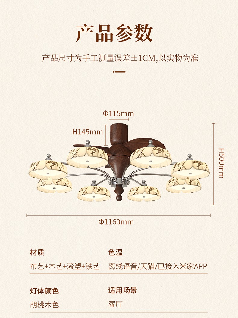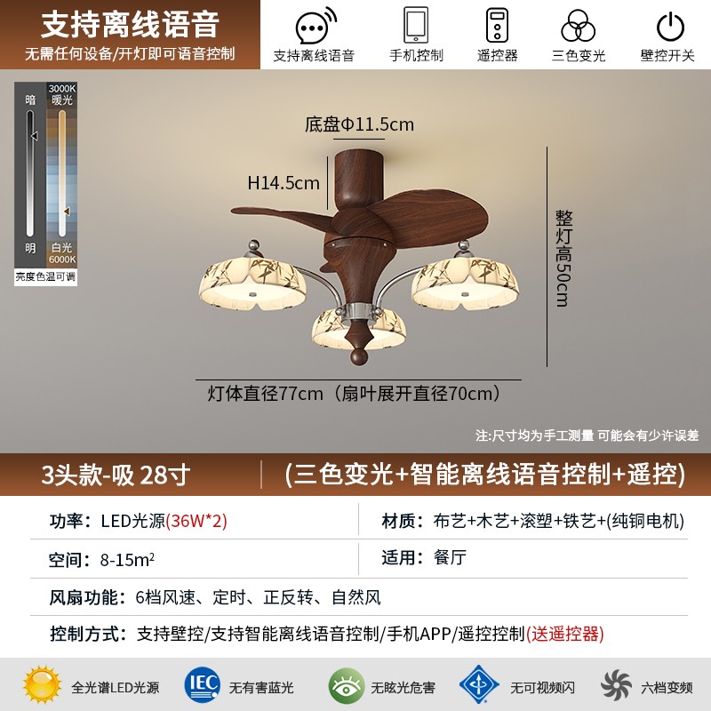 | 型号 | QL-1115-3头FS28寸直叶吸顶款【离线语音】 |